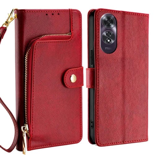 Funda de Cuero con Cremallera para Teléfono Oppo A60 4G Global (Rojo)