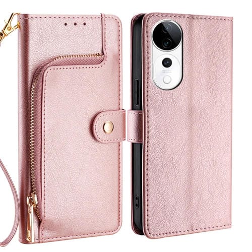 Funda de Cuero con Cremallera para Teléfono Vivo S19 Pro (Oro Rosa)