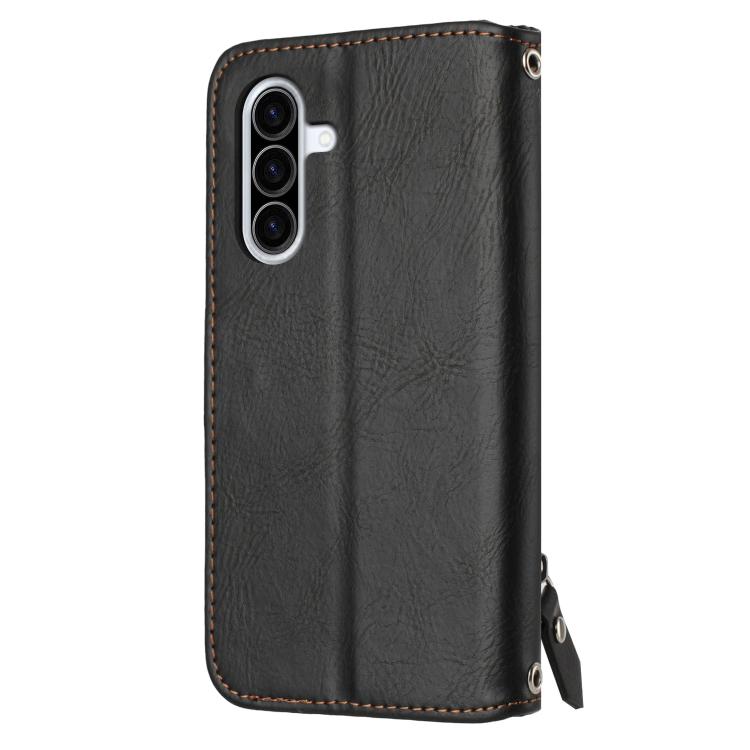 Funda de cuero con cremallera y diseño de aceite para Samsung Galaxy A17 5G / A26 5G (negra)