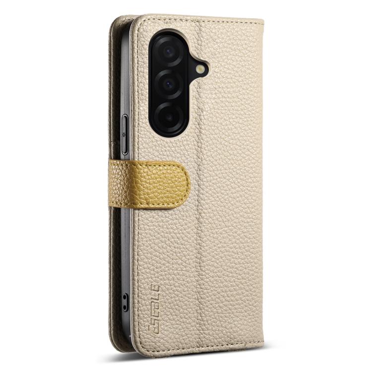 Funda de cuero con cremallera y estampado de lichi colorido para Samsung Galaxy S25 FE 5G ESEBLE E11 (caqui)