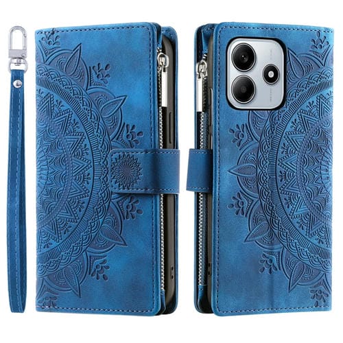 Funda de Cuero con Cremallera y Múltiples Tarjetas para Xiaomi Redmi Note 14 5G (Azul)