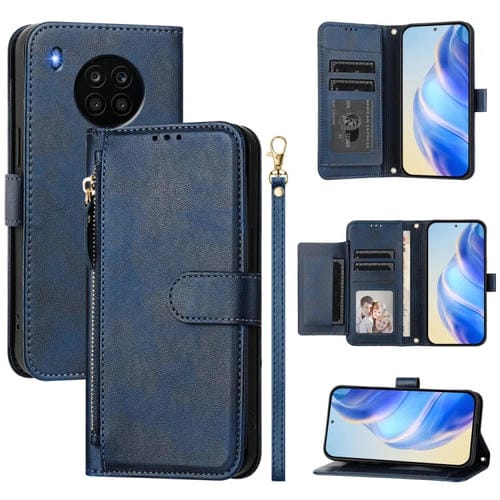 Funda de Cuero con Cremallera y Ranuras para Tarjetas para Honor 50 Lite (Azul)