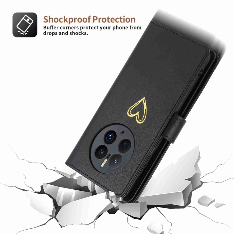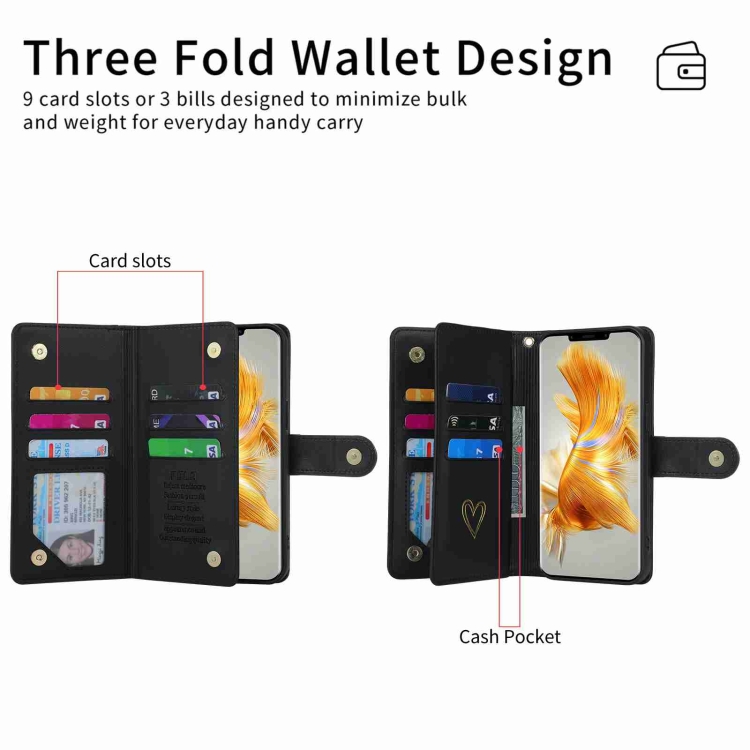 Funda de Cuero con Cremallera y Ranuras para Tarjetas Huawei Mate 50 Pro Pola Love (Negra)