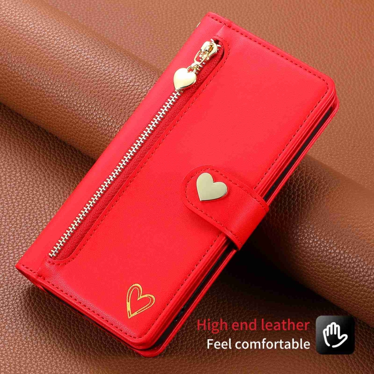 Funda de Cuero con Cremallera y Ranuras para Tarjetas Huawei Mate 50 Pro Pola Love (Rojo)