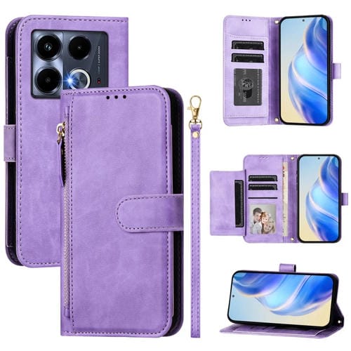 Funda de Cuero con Cremallera y Ranuras para Tarjetas para Infinix Note 40 4G (Morado)