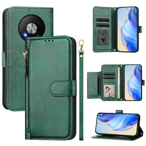 Funda de Cuero con Cremallera y Ranuras para Tarjetas para ZTE Blade A73 5G (Verde)
