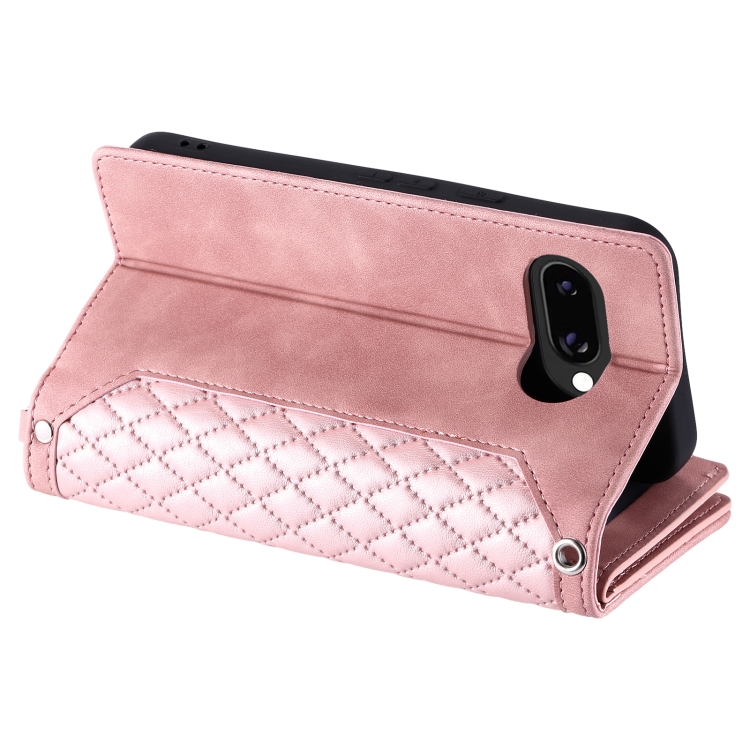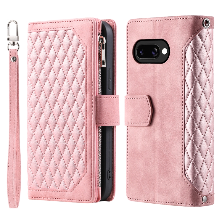 Funda de Cuero para Google Pixel 9A con Cremallera y Cordón (Oro Rosa)
