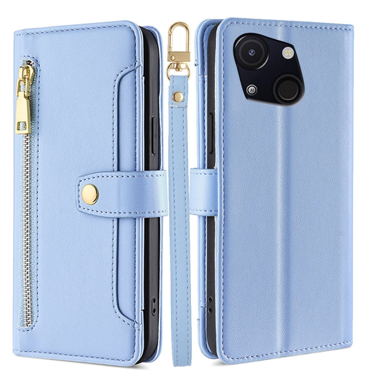 Funda de Cuero con Cremallera y Textura de Oveja para Teléfono Itel A50C 4G (Azul)