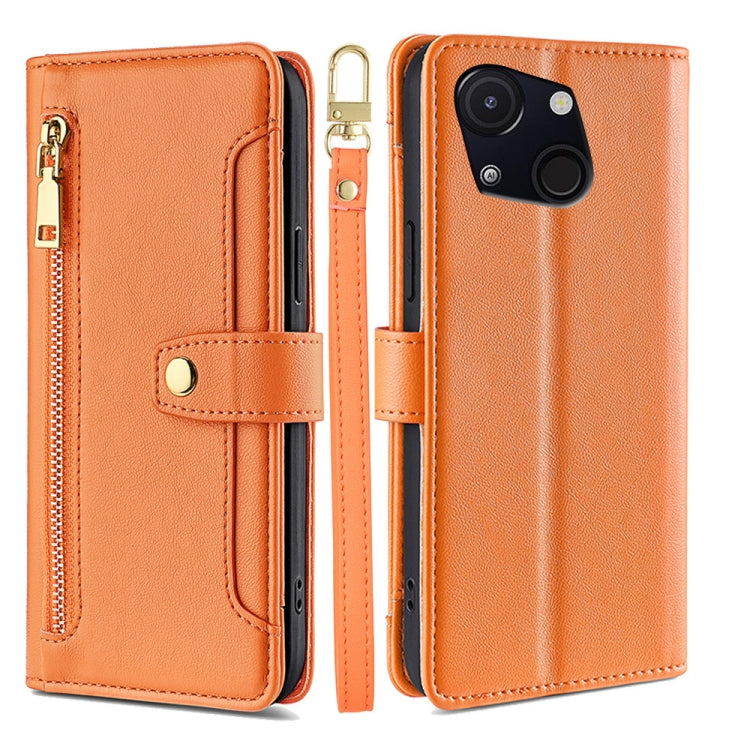 Funda de Cuero con Cremallera y Textura de Oveja para Teléfono Itel A50C 4G (Naranja)