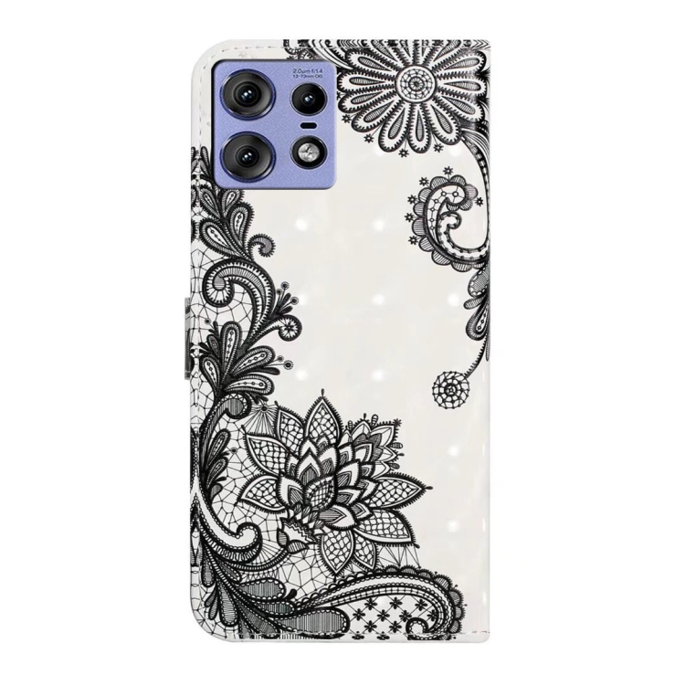 Funda de Cuero con Dibujo 3D en Relieve de Aceite para Motorola Edge 50 Pro (Flor de Encaje)