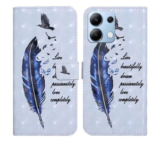 Funda de Cuero con Dibujo 3D En Relieve de Aceite para Redmi Note 13 4G (Pluma Azul)