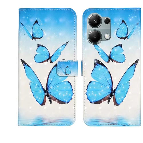 Funda de Cuero con Dibujo 3D En Relieve de Aceite para Redmi Note 13 Pro 4G (3 Mariposas)