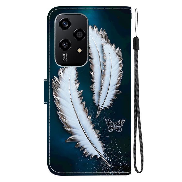 Funda de Cuero Honor 200 Lite con Dibujo a Color y Textura Cristal Global (Plumas de Mariposa Blancas)