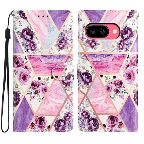 Funda de Cuero con Dibujo de Colores para Google Pixel 9A (Mármol Morado)