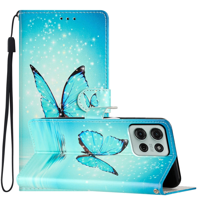 Funda de Cuero para Motorola Moto G75 5G con Dibujo de Colores (Mariposa Azul)