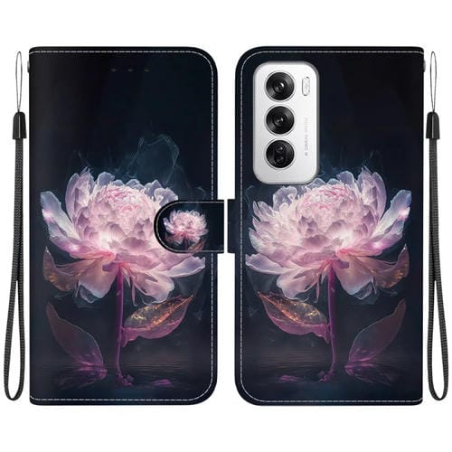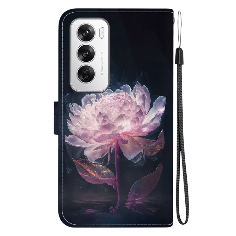 Funda de Cuero con Dibujo de Colores y Textura de Cristal Global para Oppo Reno12 5G (Peonía Morada)