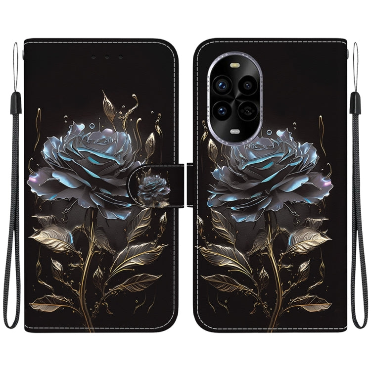 Funda de Cuero con Dibujo y Textura de Cristal para Huawei Nova 13 Pro (Rosa Negra)