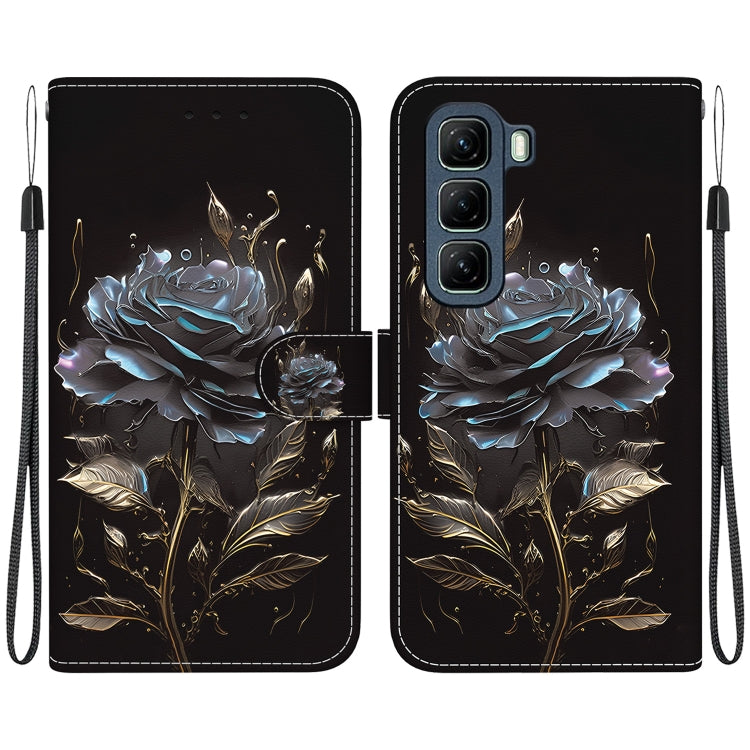 Funda de Cuero con Dibujo y Textura de Cristal para Infinix Hot 50 4G (Rosa Negra)