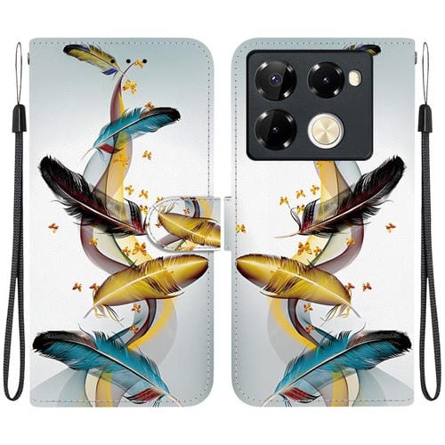 Funda de Cuero para Infinix Note 40 Pro 4G/5G/Pro+ con Dibujo y Textura de Cristal (Plumas de Mariposa Doradas)