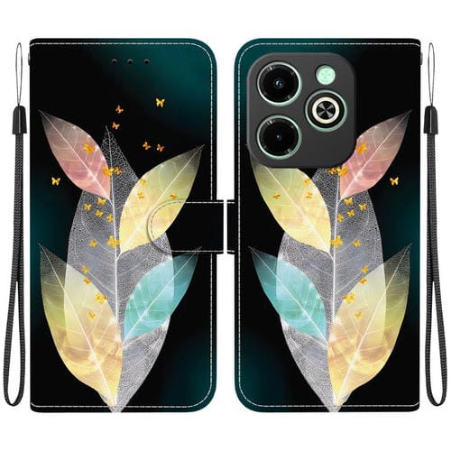 Funda de Cuero para Infinix Smart 8/HD/Hot 40I con Dibujo de Hojas de Colores y Textura de Cristal