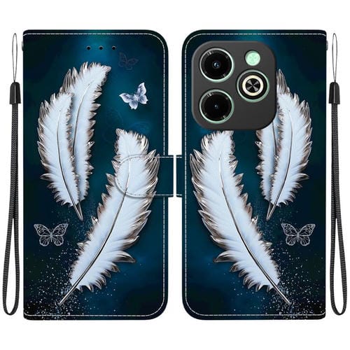 Funda de Cuero para Infinix Smart 8/HD/Hot 40I con Dibujo de Colores y Textura de Cristal (Plumas de Mariposa Blancas)