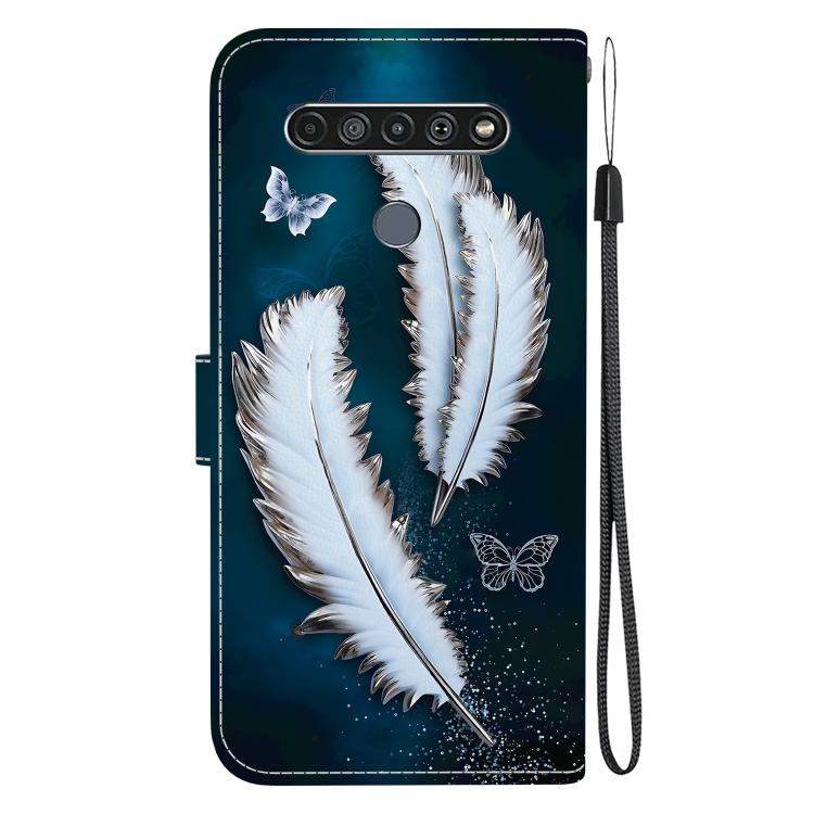 Funda de Cuero para LG K61 con Dibujo de Colores y Textura de Cristal (Plumas de Mariposa Blancas)
