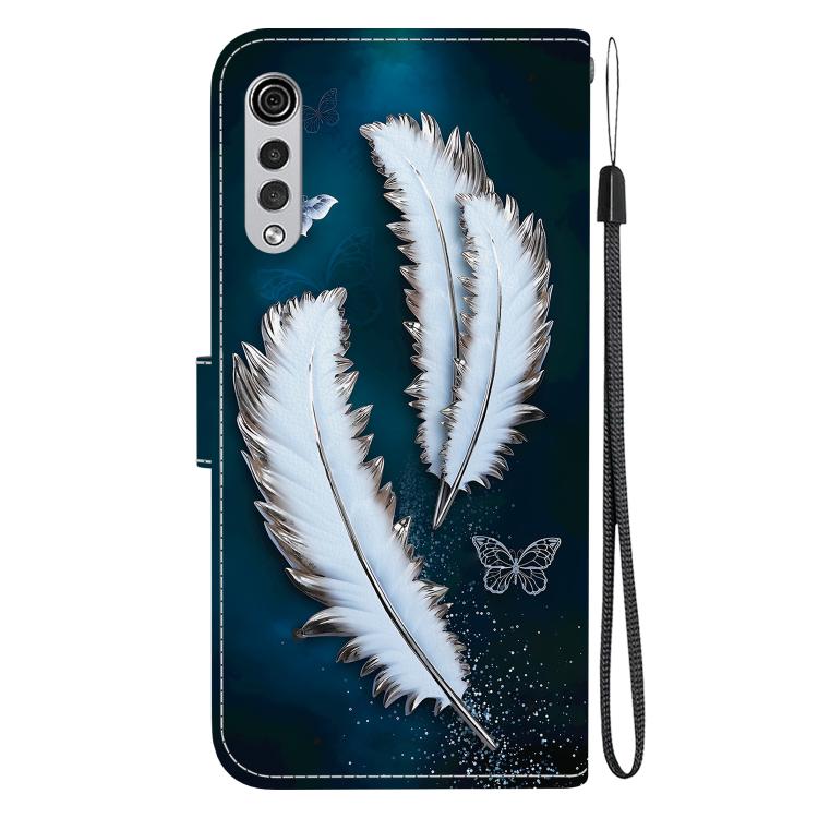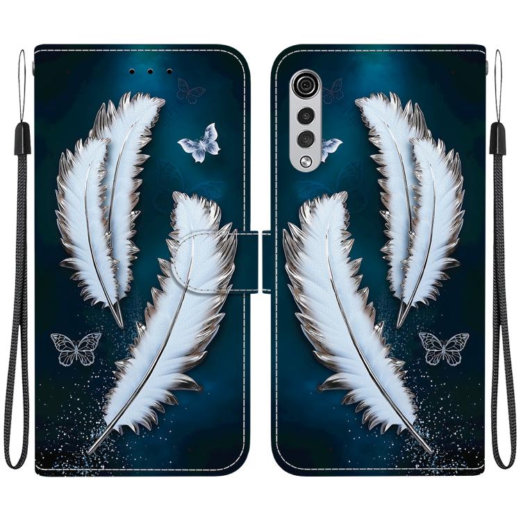 Funda de Cuero LG Velvet 5G/G9 4G con Dibujo y Textura de Cristal (Plumas de Mariposa Blancas)