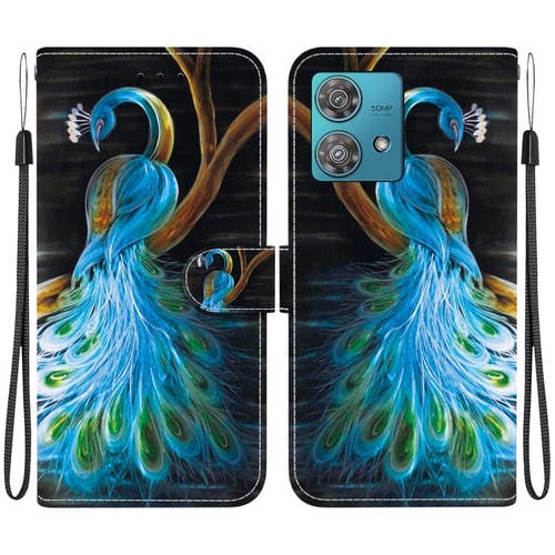 Funda de Cuero para Motorola Edge 40 Neo con Dibujo de Colores y Textura de Cristal (Pavo Real)