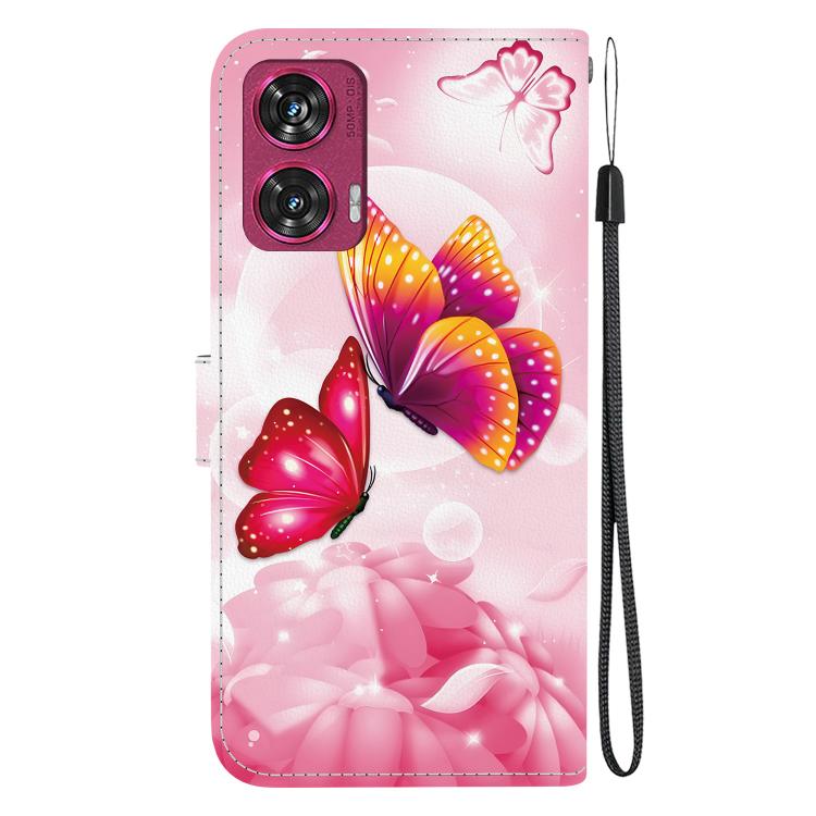 Funda de Cuero Motorola Edge 50 Fusion con Dibujo de Colores y Textura de Cristal (Mariposas Rosas)