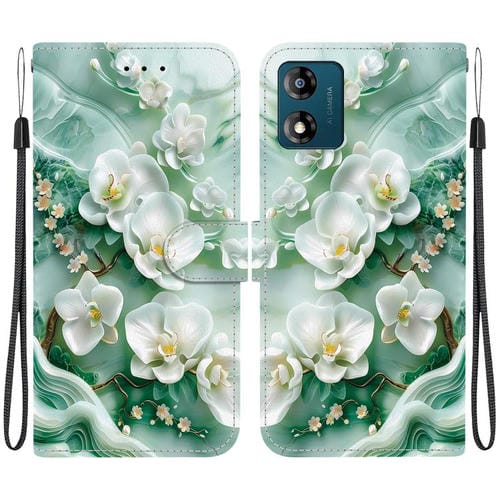 Funda de Cuero para Motorola Moto E13 con Dibujo de Colores y Textura de Cristal (Flores de Jade)