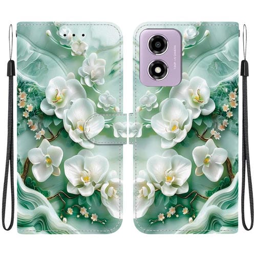 Funda de Cuero Motorola Moto G04S/E14 con Dibujo de Colores y Textura de Cristal (Flores de Jade)