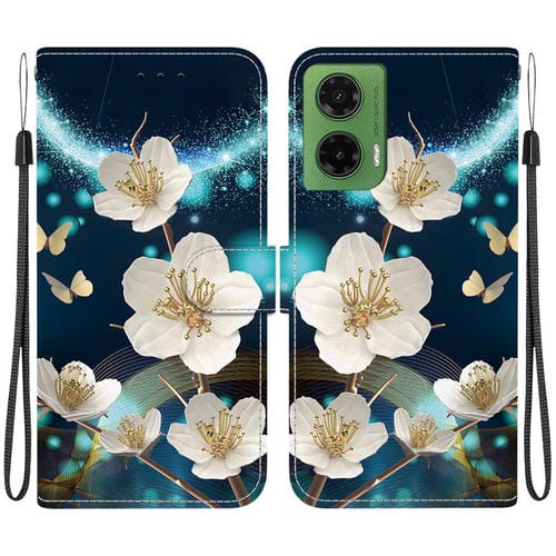 Funda de Cuero con Dibujo de Colores y Textura de Cristal para Motorola Moto G35 (Magnolia)