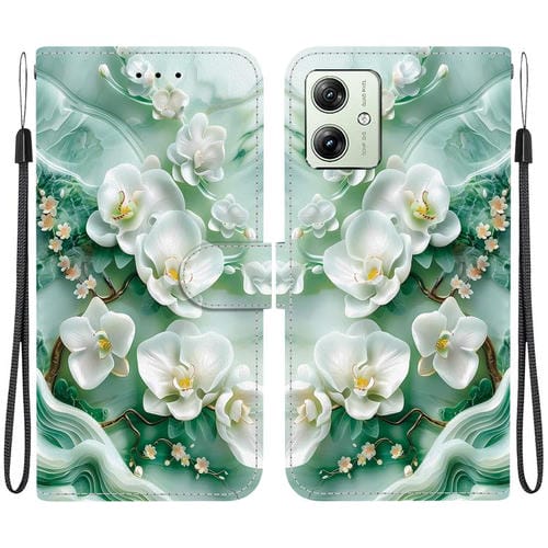Funda de Cuero Motorola Moto G54 con Dibujo de Colores y Textura de Cristal (Flores de Jade)