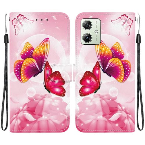 Funda de Cuero para Motorola Moto G54 con Dibujo de Colores y Textura de Cristal (Mariposas Rosas)