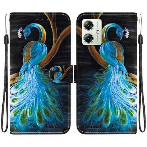 Funda de Cuero Motorola Moto G54 con Dibujo de Colores y Textura de Cristal (Pavo Real)