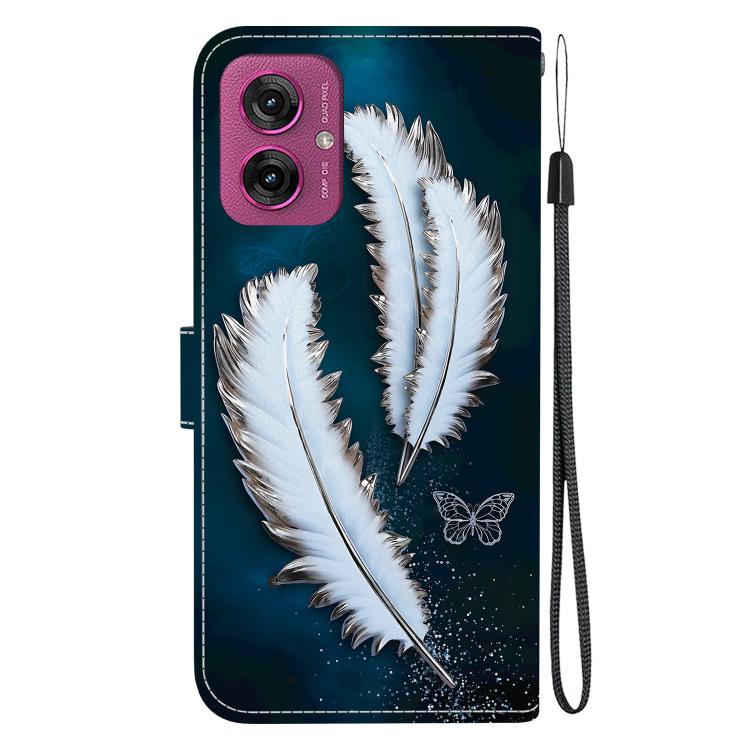Funda de Cuero para Motorola Moto G55 con Dibujo de Colores y Textura de Cristal (Plumas de Mariposa Blancas)