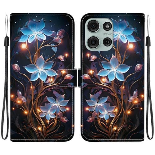 Funda de Cuero para Motorola Moto G75 5G con Dibujo de Colores y Textura de Cristal (Flor de Linterna Pequeña)