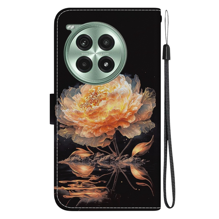 Funda de Cuero para OnePlus Ace 3 Pro con Dibujo de Colores y Textura de Cristal (Peonía Dorada)