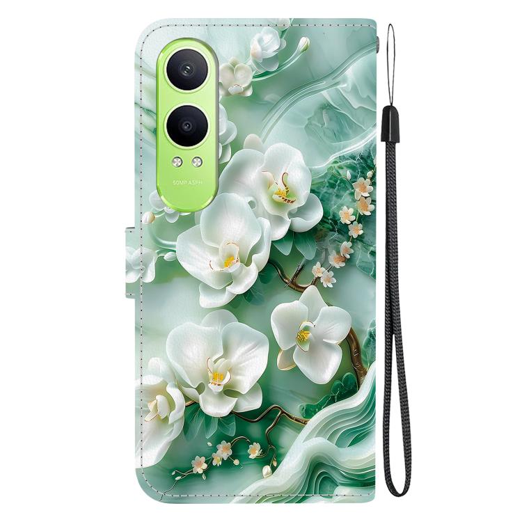 Funda de Cuero OnePlus Nord CE4 Lite con Dibujo de Colores y Textura de Cristal (Flores de Jade)