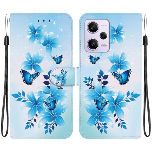 Funda de Cuero con Dibujo de Colores y Textura de Cristal para Redmi Note 12 Pro/Poco X5 Pro (Mariposas Azules)