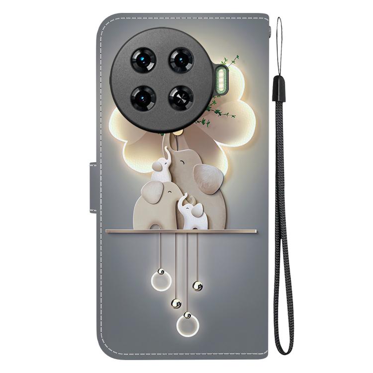 Funda de Cuero para Tecno Spark 20 Pro+ 4G con Dibujo de Colores y Textura de Cristal (Elefantes)