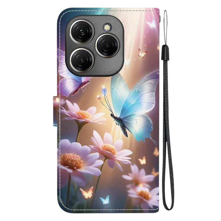 Funda de Cuero para Tecno Spark 20 Pro con Dibujo de Colores y Textura de Cristal (Mariposa, Amor y Flores)