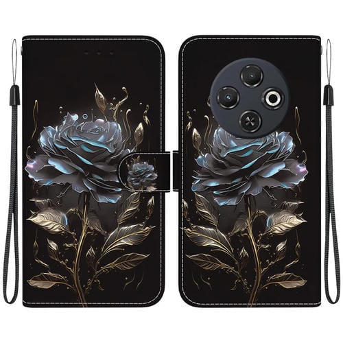 Funda de Cuero para Tecno Spark 30C con Dibujo de Colores y Textura de Cristal (Rosa Negra)