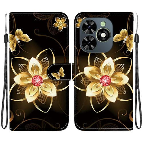 Funda de Cuero con Dibujo y Textura de Cristal para Tecno Spark Go 2024/20C/Pop 8 (Flor Dorada)