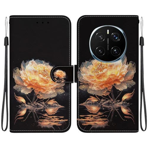 Funda de Cuero con Dibujo y Textura de Cristal para Honor Magic7 Pro (Peonía Dorada)