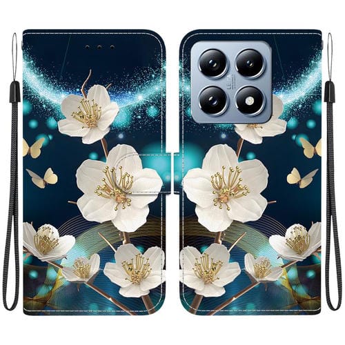 Funda de Cuero con Dibujo de Colores y Textura de Cristal para Xiaomi 14T Pro (Magnolia)