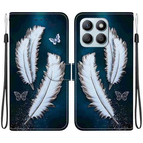 Funda de Cuero para Honor X8B con Dibujo y Textura de Cristal (Plumas de Mariposa Blancas)
