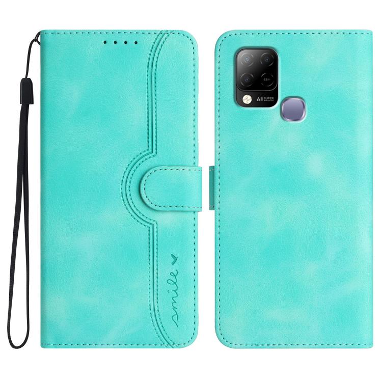 Funda de Cuero con Diseño de Corazón para Infinix Hot 10T y Hot 10S (Azul Claro)