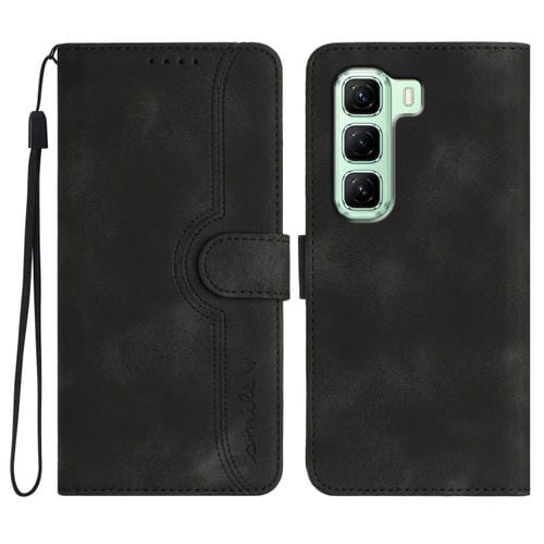 Funda de Cuero para Infinix Hot 50 5G con Diseño de Corazón y Tacto Agradable (Negra)