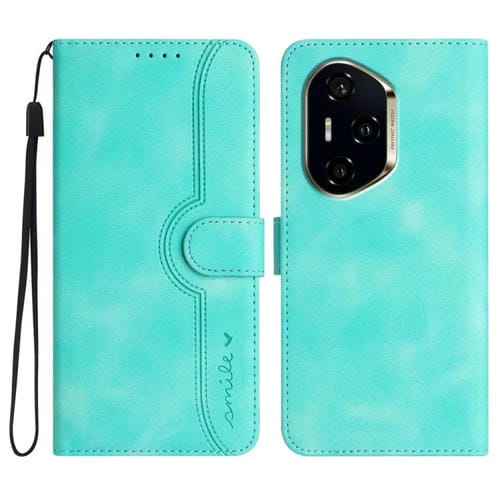 Funda de Cuero para Honor 300 Pro y Honor 300 Ultra con Diseño de Corazón y Tacto Sedoso (Azul Claro)